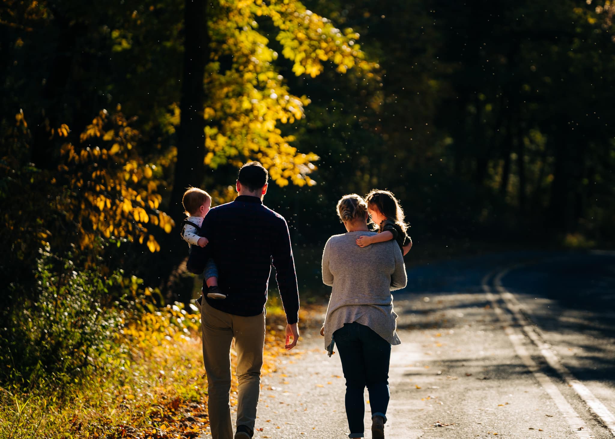 We have had the privilege of photographing this lovely family for the past few years and have loved watching them grow into a family of four! This year, the stars (and bugs) aligned for this photoshoot with perfect Fall foliage and golden sunlight. We threw leaves, walked through the woods, and jumped along a road. Oh! And we also took some photos.
