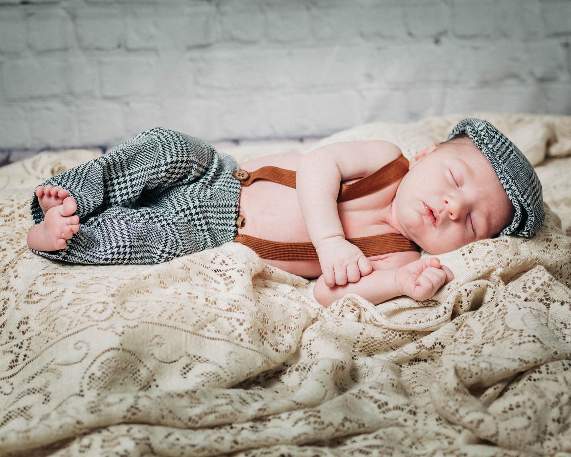 We waited (not-so) patiently for 39 weeks and 6 days for this big guy to make his appearance and he certainly did not disappoint! He almost didn’t fit in some of our props, which we think makes the pictures even cuter and was constantly trying to Houdini out of the swaddles. He refused to lay anywhere except on his back or side, despite much prodding and positioning. Big brother and resident cheese-ball, Brayden, could not be prouder of his baby brother. Enjoy all 9lb and 2 oz of pictures with this snuggly babe!