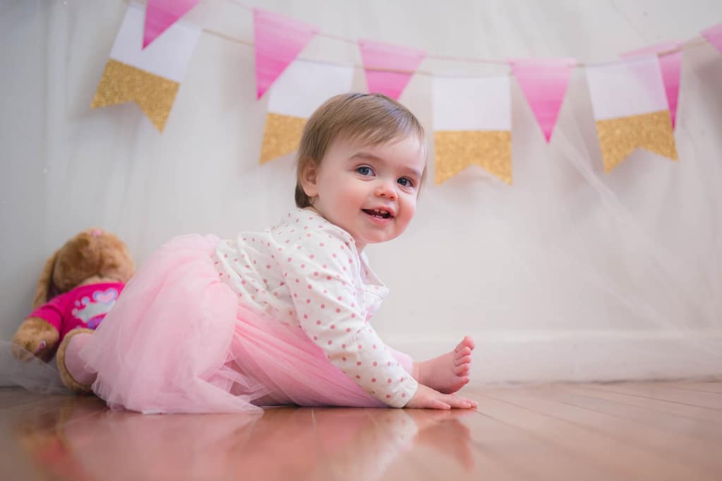 This little muchkin ate her cake in a very ladylike way at her party with a ton of eyes on her but we got her alone and the gloves came off. She got plenty messy – her face, clothes, and even her dad! Here are some of our favorites.